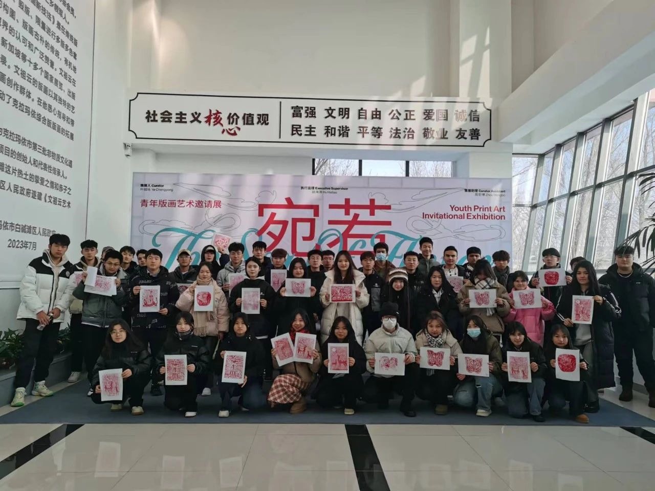 学院团委组织50名学子前往白碱滩区参观“宛若花海”青年版画...