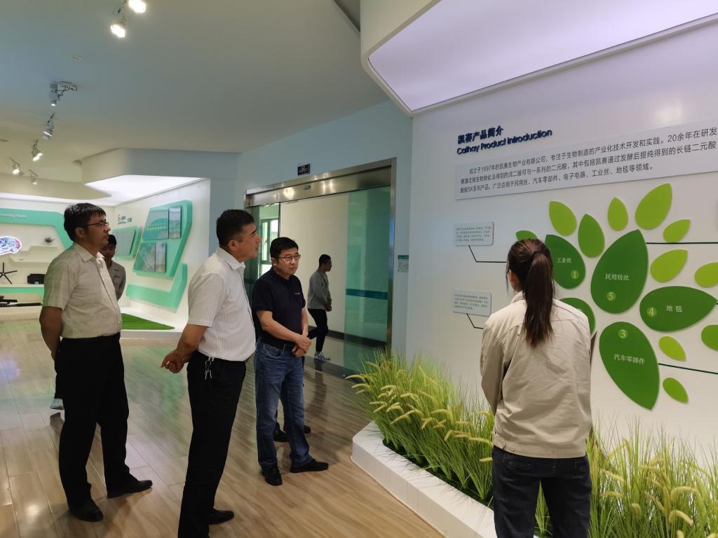 首先学院党委副书记、纪委书记扎克•司马义一行在凯赛(乌苏)生物技术有限公司副总经理王洪波的陪同下,参观了企业的产品展厅,详细了解了企业的产品,随后与企业领导进行了座谈交流。