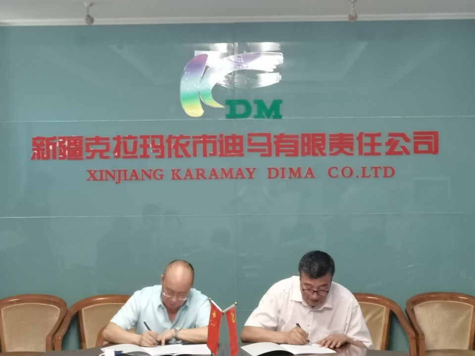 学院党委副书记、纪委书记扎克•司马义介绍了学院的发展情况,就拓宽就业渠道、拓展就业岗位、开展实习实训、加强就业指导等方面与企业领导进行了深入交流,并代表学院与企业签订了《产教融合校企合作协议》,与企业领导一起为克拉玛依职业技术学院产教融合实训基地和教师企业实践流动站进行了揭牌。