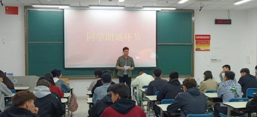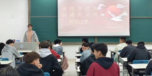 为了进一步营造良好的学习氛围,培养学生高尚的道德情操,让学生感受国家通用语言文字的魅力,继承和发扬祖国灿烂的诗歌文化。4月10日晚,机械工程分院化机2332班举办“铸牢中华民族共同体意识”系列活动之“诵国学经典,品盛世文明”朗诵比赛,班主任、辅导员、交友老师参加了此次活动。