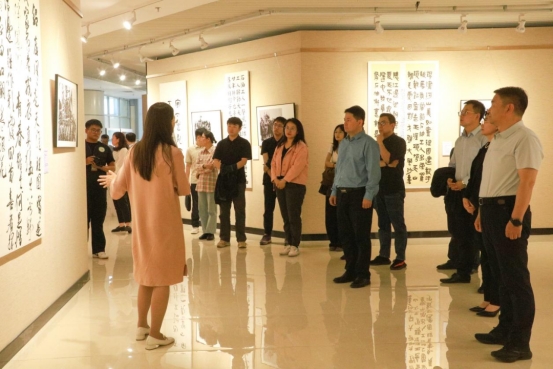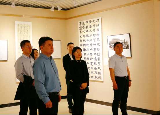 随后,在中国书法家协会女书法家委员会委员、市文化馆研究馆员、新时代石油精神年代人文展策展人崔磊老师的带领下,与会嘉宾一同参观了“新时代石油精神年代人文展”。此次展览分为三个篇章,分别是荒漠扎根、实干兴邦、奋进新时代。展览通过珍贵的历史照片、书法和微电影等形式,全面回顾了克拉玛依油田和城市建设的发展历程。
