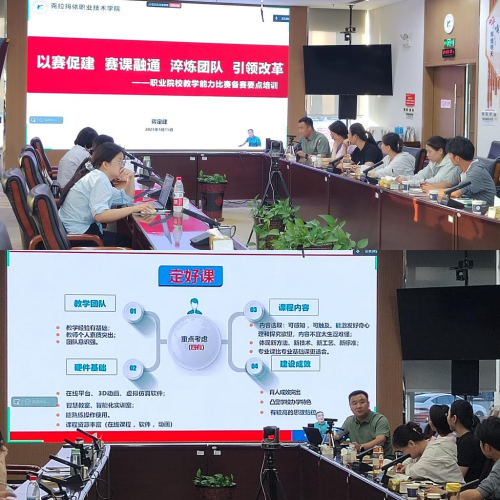 为进一步提升教师教学能力,备战即将到来的自治区职业院校技能大赛教学能力比赛,5月15日,学院教务处在J1一楼会议室组织召开了备赛要点专题培训会。此次培训由学院教务处处长蒋定建主讲,他以《以赛促建 赛课融通 淬炼团队 引领改革》为题,为今年参赛的6支团队20余名教师进行了深入细致的培训指导。