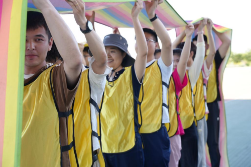 “神笔马良”环节,师生们共同操控巨型毛笔书写“同心”二字。在 这一过程中,大家全神贯注,通过不断沟通与调整,完成了创意书写。这不仅锻炼了大家的沟通能力,还让师生们在共同完成任务的过程中,感受到了合作带来的成就感,增强了心理上的满足感与自信心。