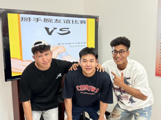 为深入贯彻落实民族团结进步教育,丰富学生课余生活,增进宿舍成员间的凝聚力与友谊,5月28日,电子与电气工程分院于一站式学生活动社区成功举办 “民族团结一家亲之宿舍‘掰手腕’比赛”。本次活动吸引了分院众多宿舍积极参与,同学们以力量与热情诠释了团结友爱、积极向上的精神风貌。