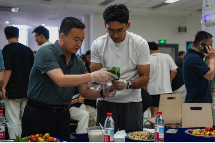 端午,最经典的就是包粽子。糯米裹着红枣的甜、再用粽叶紧紧缠绕,这不仅是手艺,更是对传统的致敬。活动现场摆满了糯米、粽叶、红枣等食材。师生们围在一起,大家一边包粽子,一边交流着包粽子的技巧,分享着生活中的趣事,欢声笑语不断,浓浓的节日气氛拉近了彼此之间的距离。