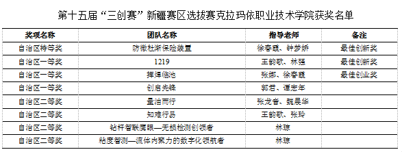 5月23至25日,为期三天的第十五届全国大学生电子商务“创新、创意及创业”挑战赛(简称“三创赛”)新疆赛区选拔赛在新疆大学圆满落幕。克拉玛依职业技术学院在此次比赛中表现突出,创下学院参加该项赛事历史最佳战绩,斩获特等奖1项、一等奖3项、二等奖4项,并获最佳创新奖2项,最佳创业奖1项,学院获“优秀组织奖”。