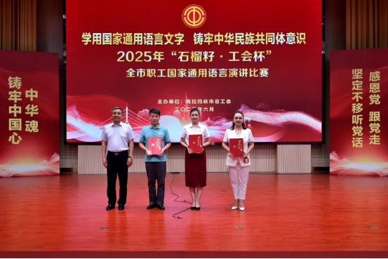 6月26日,在克拉玛依市2025年“石榴籽·工会杯”全市职工国家通用语言演讲比赛中,学院教师赵明阔以出色的表现荣获一等奖,展现了学院教师队伍深厚的文化素养和昂扬的精神风貌。