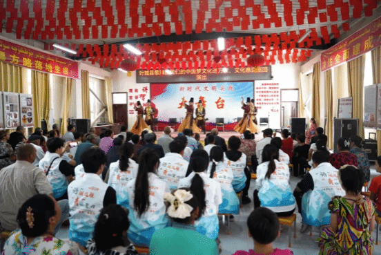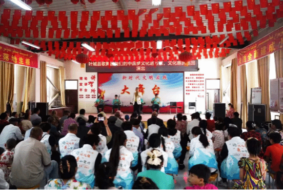 团队成员在叶城县歌舞团的邀请下,来到了叶城县巴仁乡吐格曼贝希村便民服务站,与村民共同观看“我的中国梦 文化进万家”文化惠民巡回演出。