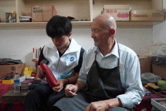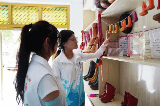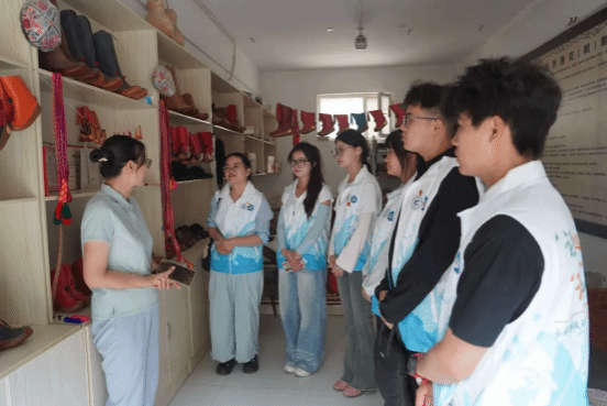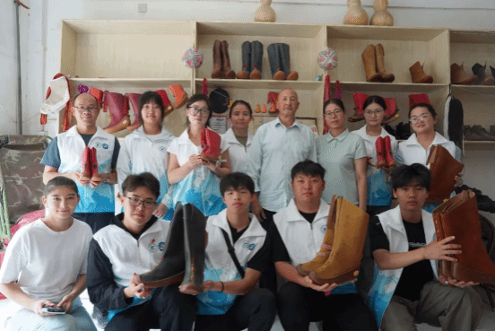 实践团成员不仅观摩了阿木丁・阿布都热合曼制作乔鲁克靴的过程,还沉浸式体验了制靴环节,近距离感受传统工艺的魅力,进一步明确要将非物质文化遗产传承与推广国家通用语言文字紧密结合,一同推动非物质文化遗产的传承与发展。
