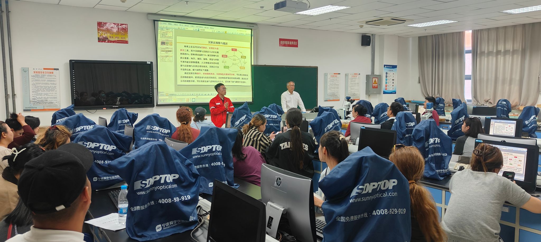 活动中,学院银龄教师王尤富教授、杨香华教授带领青年教师团队主动担当,精心设计并呈现了一场时长3.5小时的“高质量科普大餐”,内容涵盖克拉玛依精神的时代内涵、石油的多元用途、磕头机抽油原理、古生物演化及岩矿特性等,既有理论讲解,也有实物展示,全方位分享科普工作经验与资源应用方法。