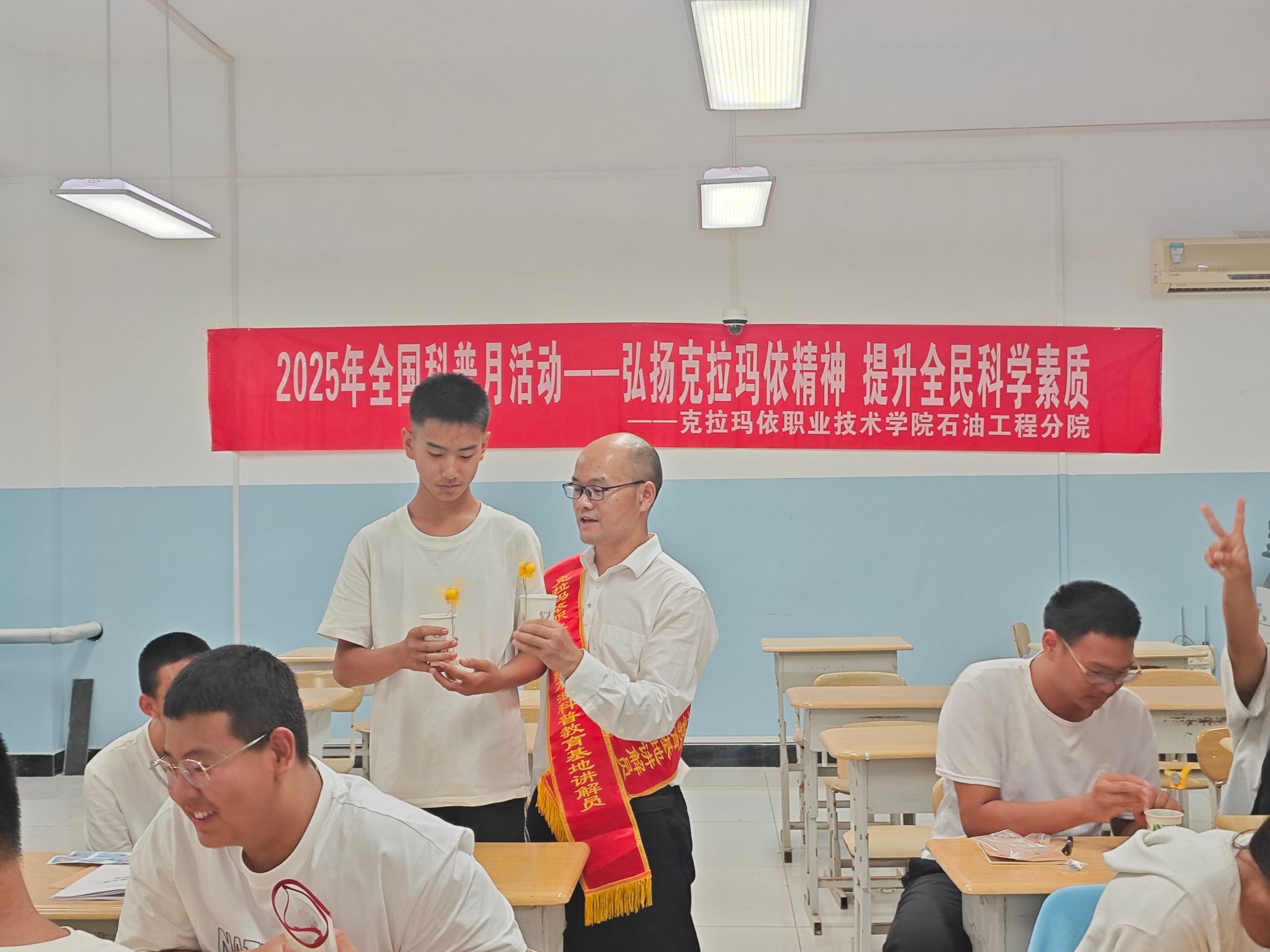 针对大一新生群体,分院精准开展“入门级”科普教育,助力新生快速融入专业学习、传承城市精神。9月25日至26日,分别为采油2531班、采油2532班组织专题科普活动,围绕《修建油气地下“高速公路”——水力压裂技术》《克拉玛依精神》两大主题展开。