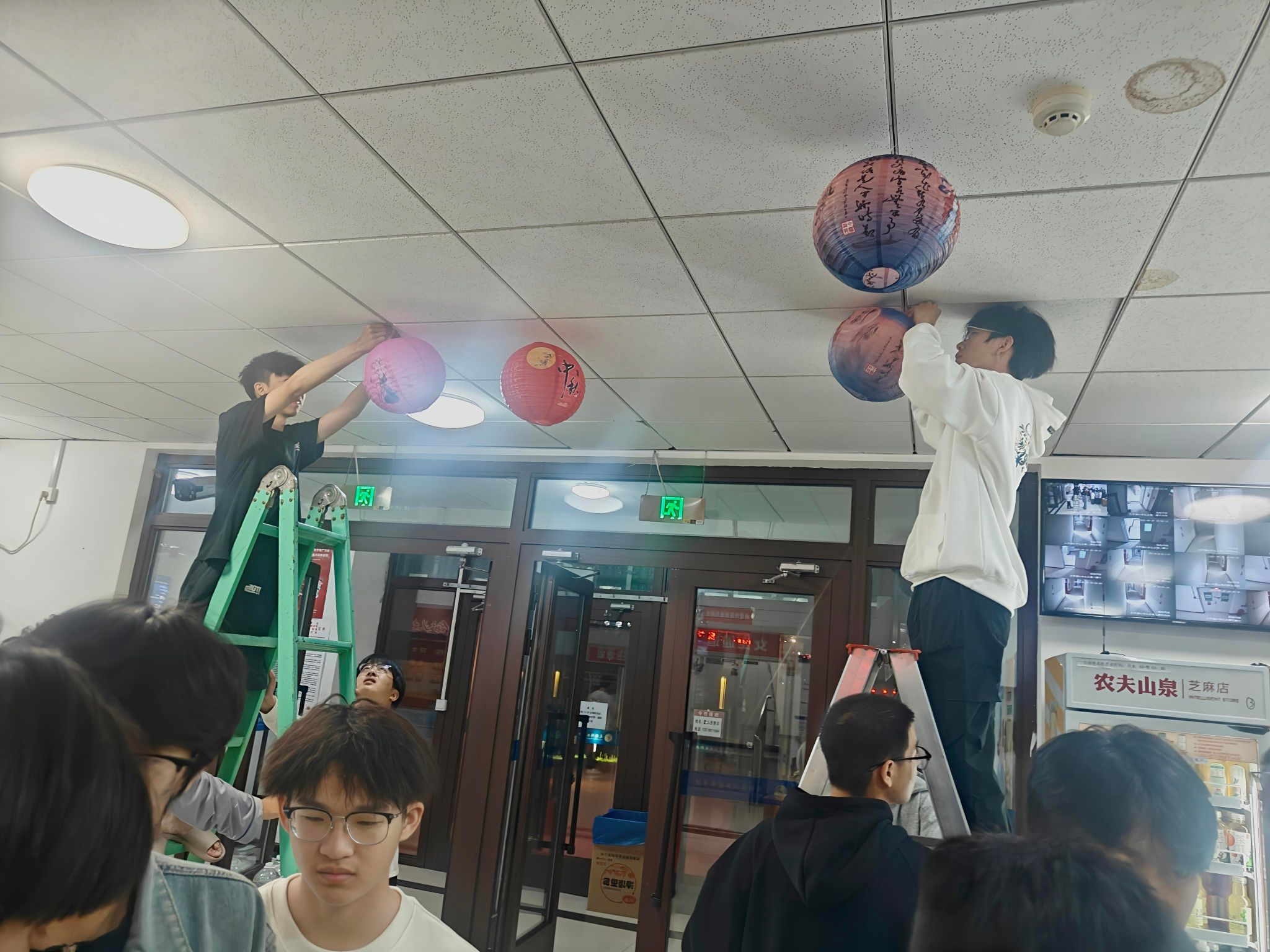 活动前期,同学们积极投入筹备工作,化身“能工巧匠”,利用课余时间亲手搭建场地、制作装饰。一盏盏手工灯笼与精心誊写的灯谜卡片交相辉映,每一处细节都凝聚着同学们的智慧与匠心,也传递出对中华优秀传统文化的喜爱。