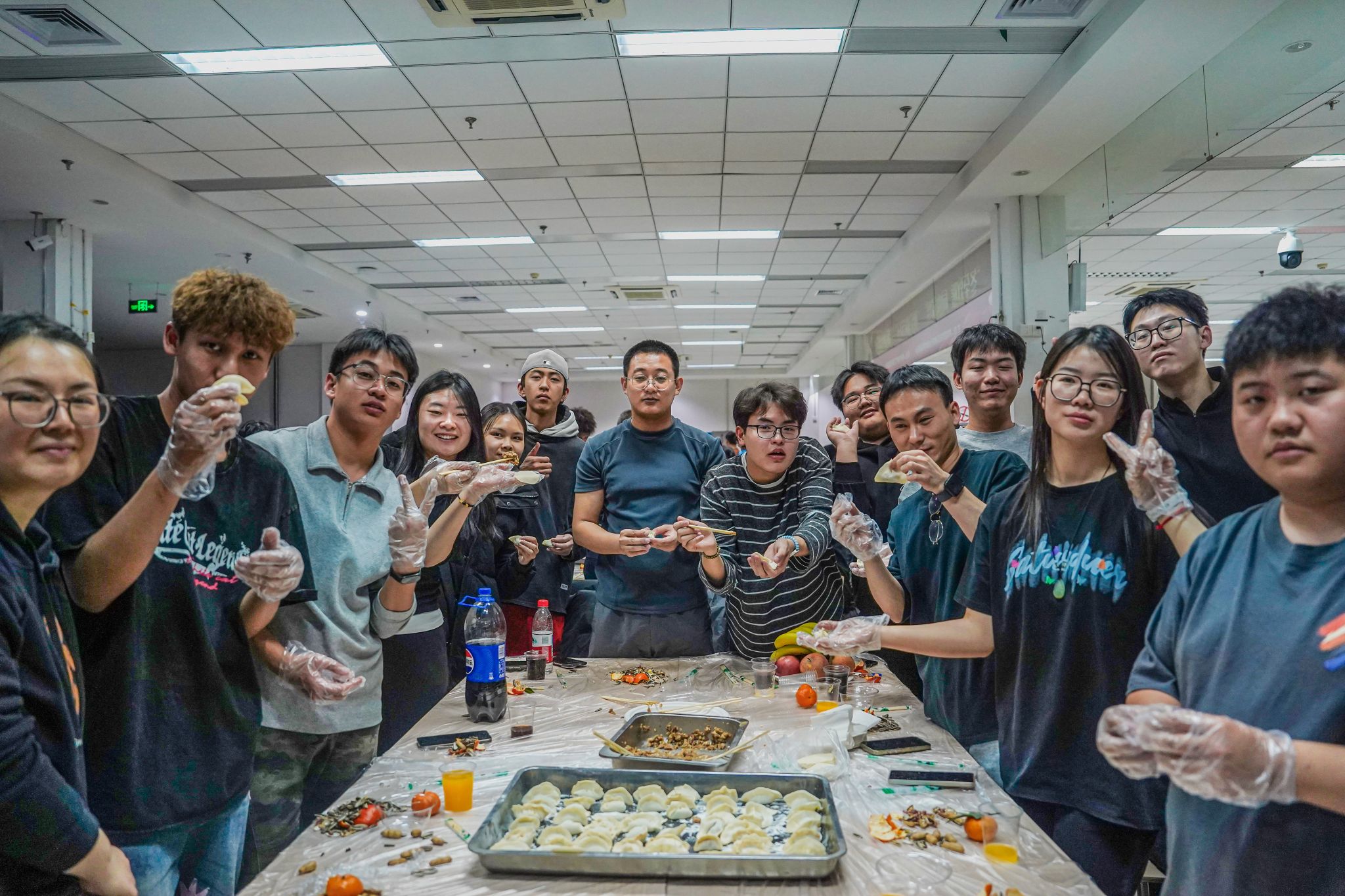 学院领导与交友学生分工协作,一起包饺子