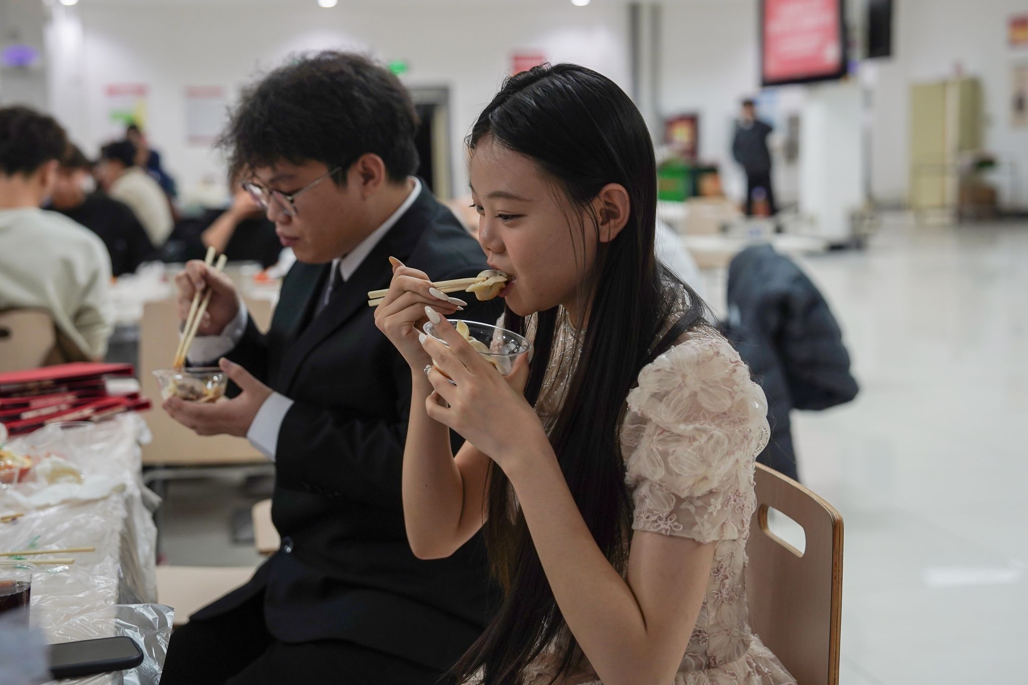 学生品尝自己包的饺子
