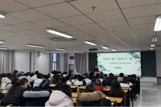 互动环节中,参会学生就赛事备赛重点、技能提升、导游词创作等问题提问,主讲学生结合自身参赛经历逐一解答,现场交流氛围热烈。此次分享会紧扣旅游酒店行业数字化转型趋势与服务升级需求,实现了优质竞赛经验的精准传递。