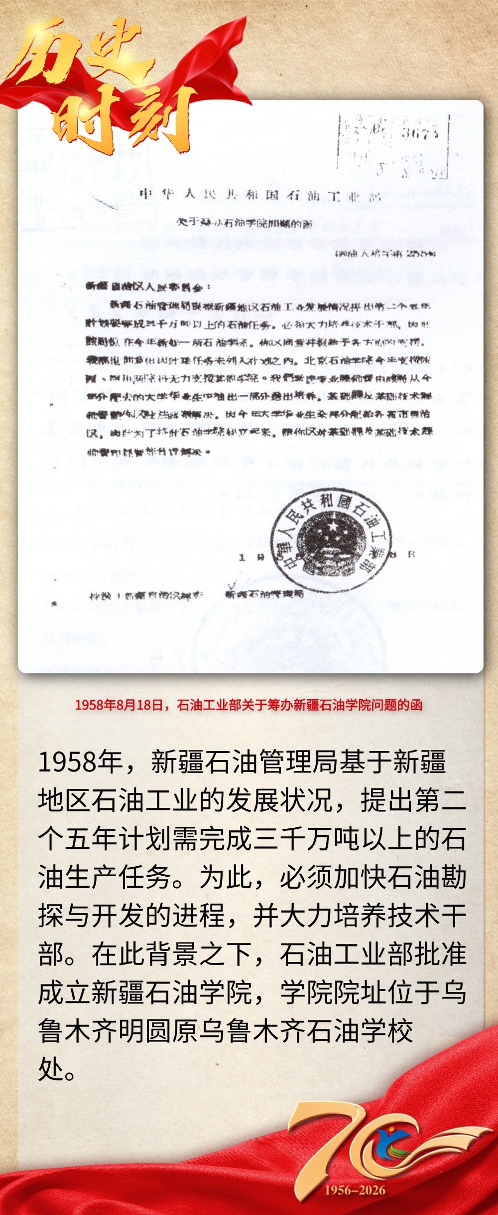 【七秩风华·魅力克职】历史时刻:1958年 依托乌鲁木齐石油学校成立新疆石油学院