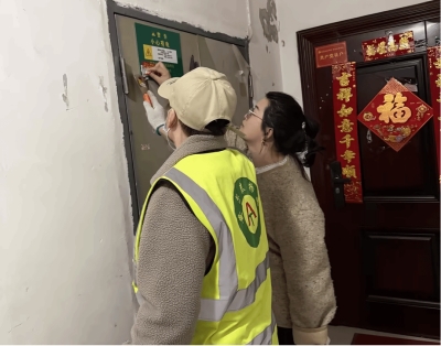 支部党员志愿者帮助清理社区公共设施上的小广告