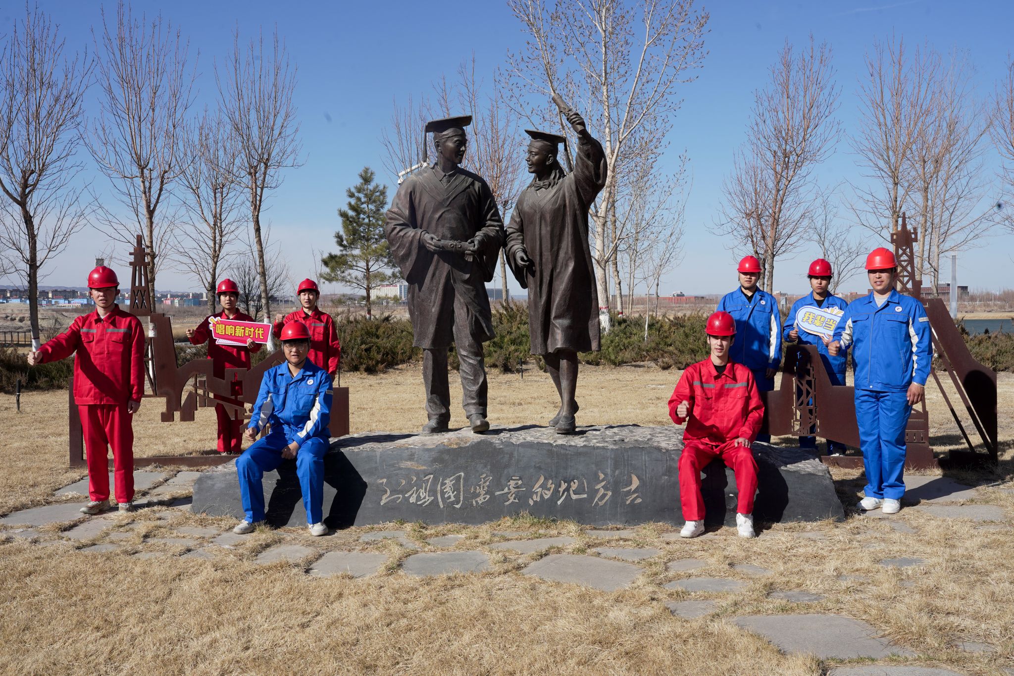 在实训场地,我们将传唱舞台搬到钻井平台模拟区、油气开采实训基地,让身着工装、头戴安全帽的学子们,在专业设备旁放声高歌。《我为祖国献石油》的经典旋律响起,字字句句诉说着石油人 “哪里有石油,哪里就是我的家” 的赤诚。