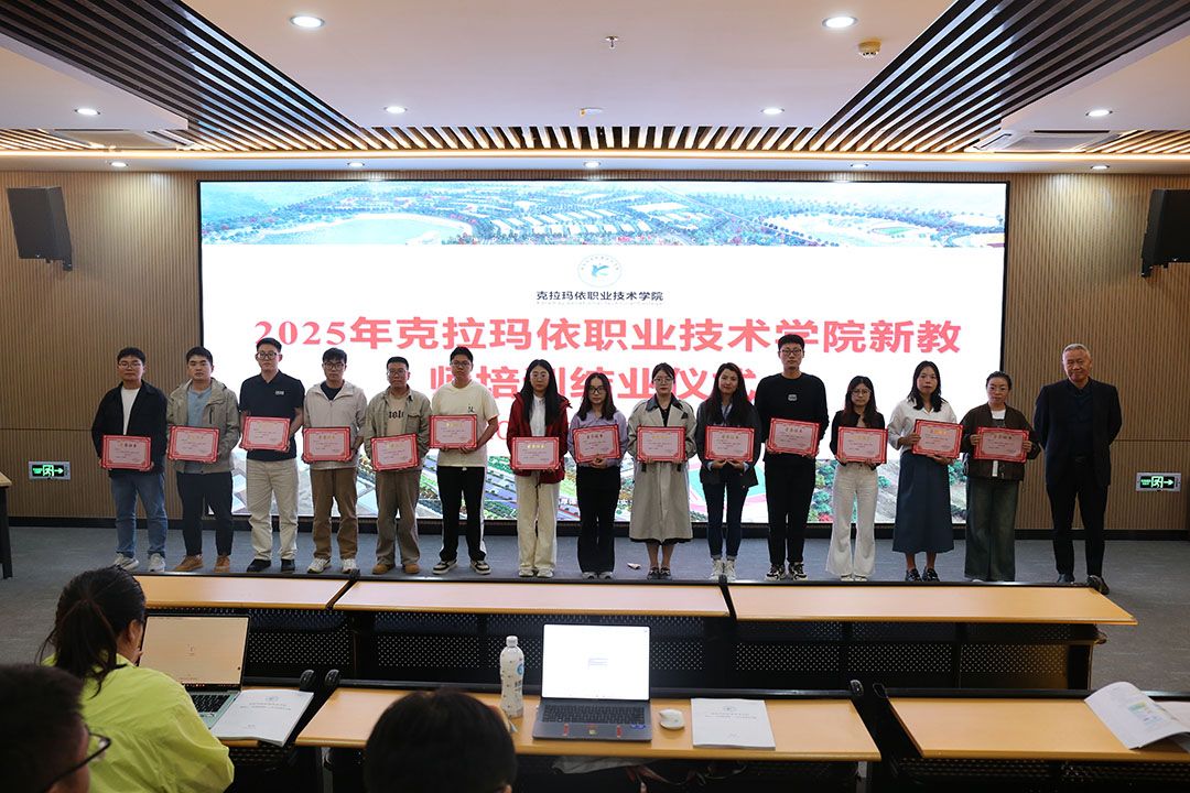 2025年9月19日下午,克拉玛依职业技术学院2025年新进教师培训班结业仪式在学院C2楼思政影院举行。结业仪式开始前,播放了培训精彩瞬间,回顾了新教师们一周培训里的点滴与成长。全体起立奏唱国歌,庄严的歌声拉开了仪式的帷幕。黄建国老师宣读了《克拉玛依职业技术学院新进教师培训班优秀学员的决定》,王港、宋婕、陶焓等优秀学员依次上台领奖。刘婉玉同志作为优秀学员代表进行发言。她分享了自己在培训中的收获、感悟以及对未来教育工作的期许,...