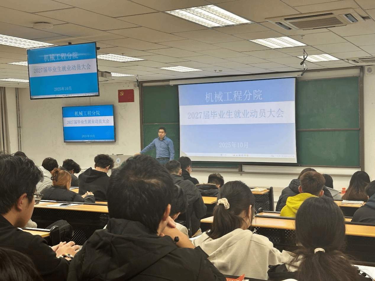 2025年10月16日晚,机械工程分院2027届毕业生动员大会在C2教学楼202、203教室举行。与往年不同,这场面向2027届学生的动员会没有停留在“要重视就业”的泛泛提醒,而是直接把企业请进校园——三一能源装备有限公司带来首场招聘宣讲,让同学们在了解就业形势的同时,也能面对面看清岗位需求、行业动向和自身差距。图1:机械工程分院院长李继霞召开动员大会动员会由分院院长李继霞老师主持。他指出,现在不是等待的时候了,很多优质企业从二年级就开始选录在校学生,...