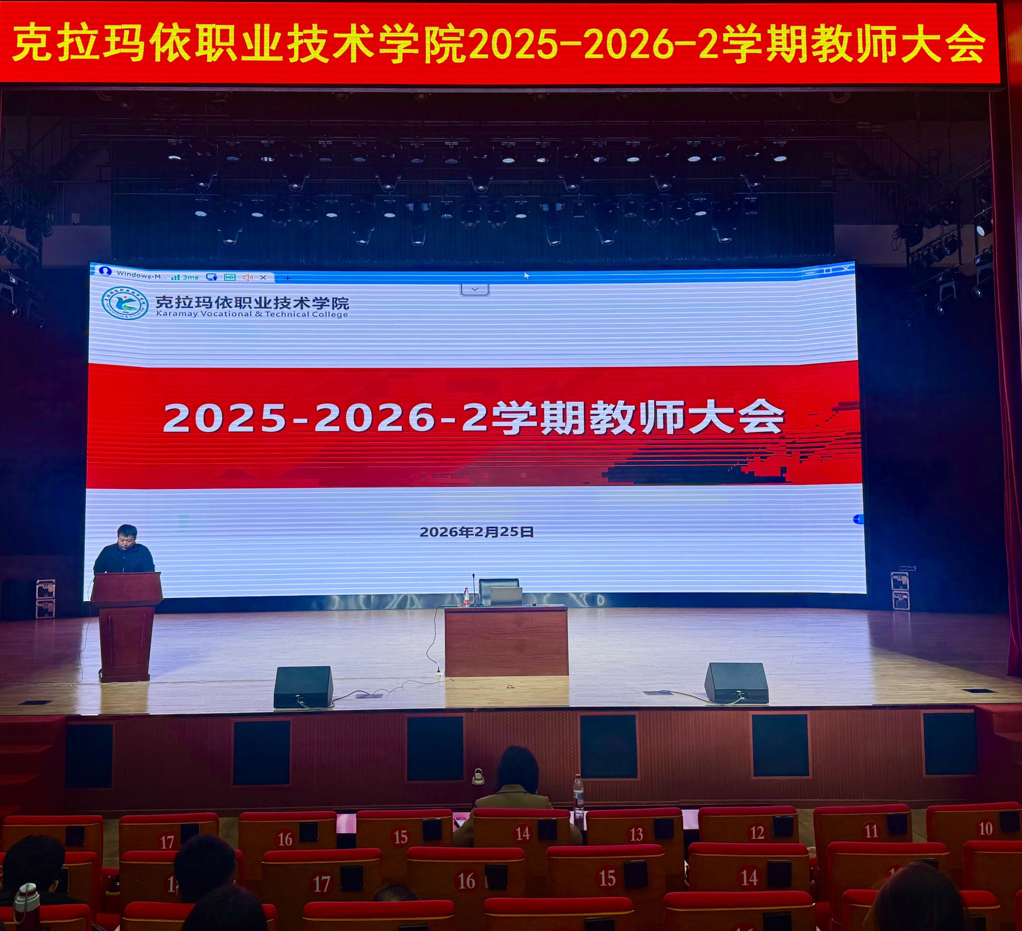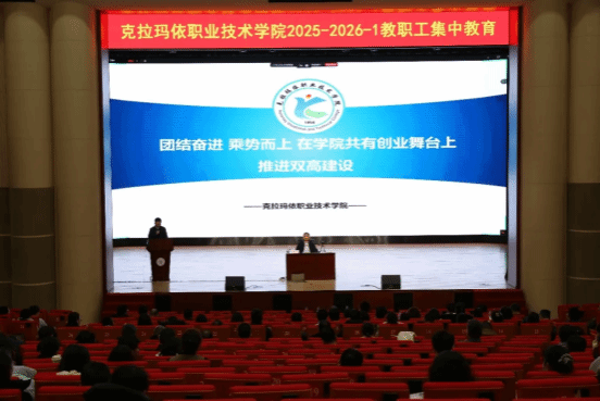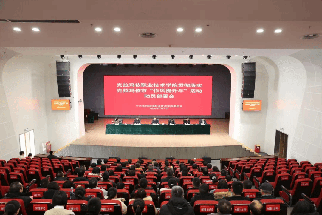 2月4日,学院贯彻落实克拉玛依市“作风提升年”活动的动员部署会在J2一楼报告厅召开。学院领导班子、全体在家中层干部以及党员参加会议。会议现场会上,传达了《关于克拉玛依市2026年“作风提升年”活动工作方案》,学习了《马学良同志在“作风提升年”活动动员部署会上的讲话》,引导全体党员干部提高政治站位,深刻认识作风建设的重要性和紧迫性。会议指出,作风建设既是政治要求,更是发展底气。全体教职工要站在坚定拥护“两个确立”...