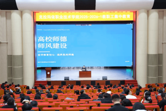 为建设“四有”好老师教师团队,提升技能人才培养质量,2月27日,学院在克拉玛依校区大学生活动中心举办师德师风专题讲座,党委副书记安熠哲以《高校师德师风建设:立德树人的根本基石与时代使命》为题,为全体教职工授课。会议现场会上,安熠哲副书记围绕师德师风的时代内涵、教师职业行为准则、以楷模为镜汲取精神力量、以案为鉴严守师德底线、建立健全师德建设长效机制五个维度深入展开。他强调,师德师风是教育大厦的第一根基,...