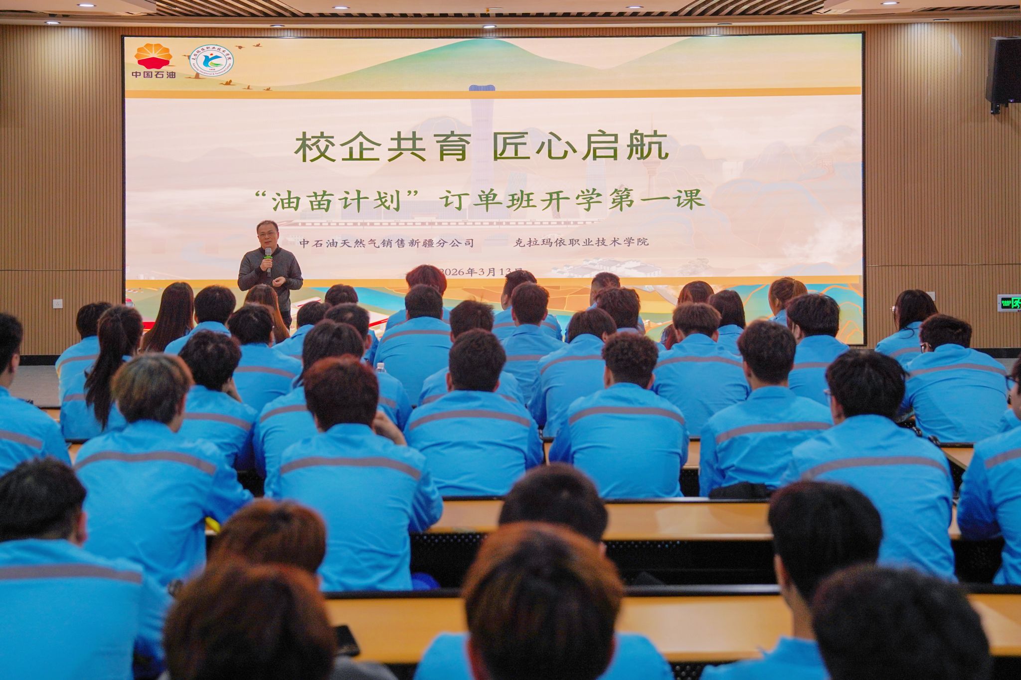 为深入落实产教融合、校企协同育人战略,扎实推进“油苗计划”订单班系统化、标准化建设,助力新疆能源产业高质量发展,3月13日,学院与中石油天然气销售新疆分公司联合举办的“油苗计划”订单班开学第一课开班仪式圆满举行。中石油天然气销售新疆分公司人力资源部(党委组织部)部长秦乐、党群工作部(党委宣传部)部长武思杨、人力资源部经理郑洁,石油工程分院书记孙新铭及“油苗计划”订单班全体师生共同参与本次开班仪式,仪式由学院祝守丽老师主持。...