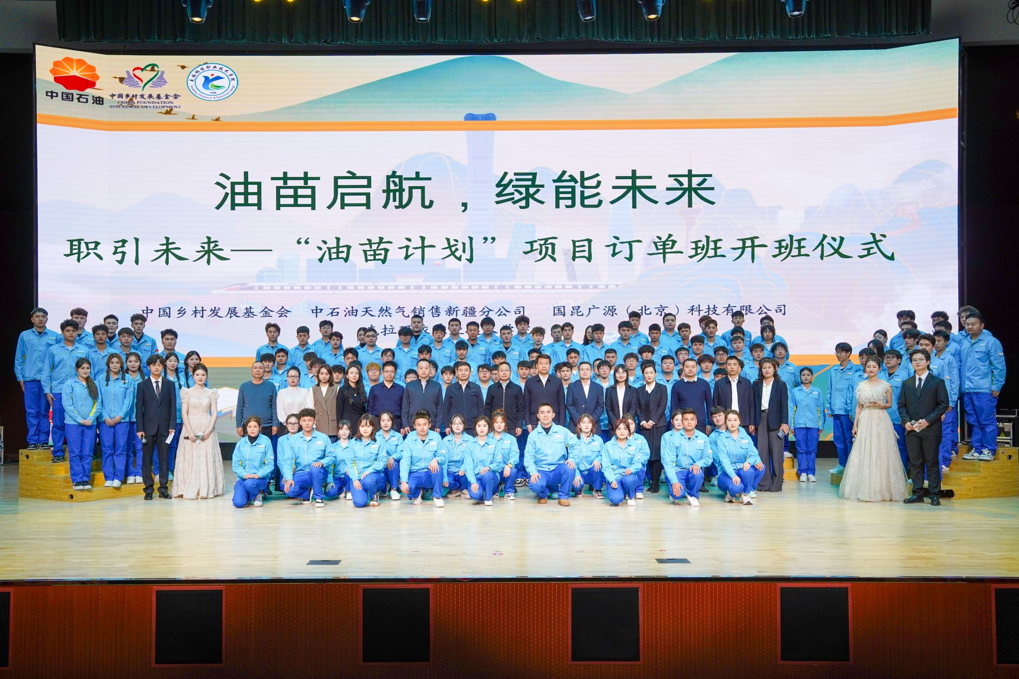 3月12日,油苗启航,绿能未来——学院“油苗计划”订单班开班仪式在大学生活动中心隆重举行。中国石油天然气股份有限公司天然气销售新疆分公司党委副书记、工会主席田维坤,国昆广源(北京)科技有限公司副总经理宋文博,学院党委副书记、院长魏新出席仪式。公司相关部门负责人,学院相关职能部门、教学分院负责人及133名订单班新生参加。开班仪式现场仪式现场,订单班学生精心编排《绿脉昆仑,苗壮业兴》诗朗诵,《宝石花的翅膀》《...